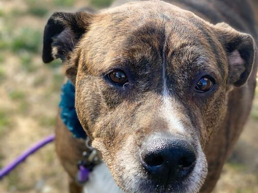 Genesis is a 110-pound brindle pit bull mix with a calm, wise soul and a heart full of quiet love. She and her brother Waffles were found beside their late owner, refusing to leave his side after he passed. Since that heartbreaking moment, Genesis has remained a steady, grounded presence—always looking out for those she loves.